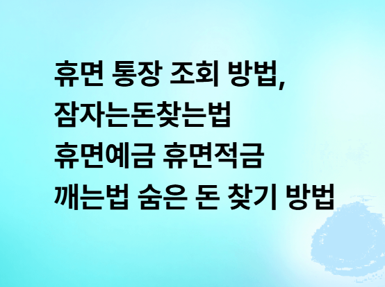 휴면 통장 조회 방법, 잠자는돈찾는법 휴면예금 휴면적금 깨는법 숨은 돈 찾기 방법 알아보기