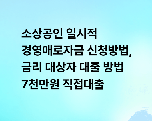 소상공인 일시적 경영애로자금 신청방법, 7천만원 직접대출 금리 대상자 대출 방법 알아보기