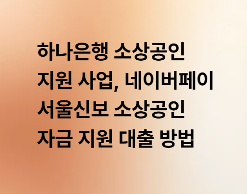하나은행 소상공인 지원 사업, 서울신보 네이버페이 소상공인 자금 지원 대출 방법 알아보기