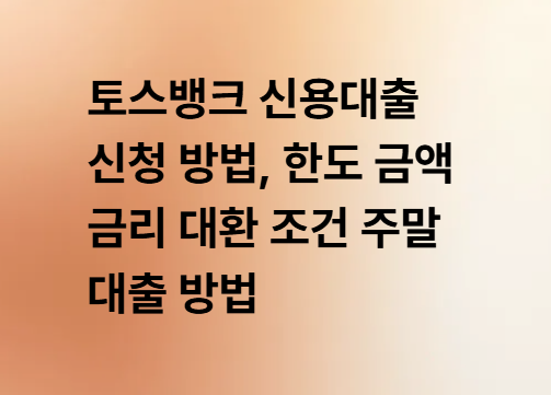 토스뱅크 신용대출 신청 방법, 금리 한도 금액 조건 대환 주말 대출 방법 알아보기