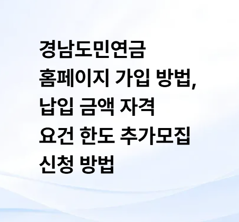 경남도민연금 홈페이지 가입 방법, 자격 요건 납입 금액 한도 추가모집 신청 방법 알아보기