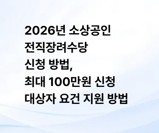 2026년 소상공인 전직장려수당 신청 방법, 대상자 요건 최대 100만원 신청 지원 방법 알아보기