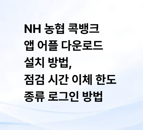 NH 농협 콕뱅크 앱 어플 다운로드 설치 방법, 이체한도 종류 점검시간 로그인 방법 알아보기
