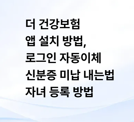더 건강보험 앱 설치 방법, 신분증 인증·자동이체 설정·로그인·미납 납부·자녀 등록 안내