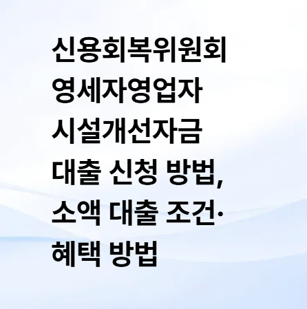 신용회복위원회의 시설개선자금 대출은 영세자영업자가 사업 환경을 안정적으로 유지할 수 있도록 돕는 매우 현실적인 금융 지원입니다. 성실하게 상환을 이어온 사람에게 제공되는 제도인 만큼 금리 부담이 적고 자금 활용 범위도 실용적입니다. 사업장 개선이 필요하지만 자금 여력이 부족한 시점이라면 시설개선자금 대출은 충분히 고려할 만한 선택지입니다.