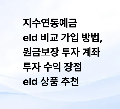 지수연동예금 eld 비교 가입 방법, 투자 수익 장점 원금보장 투자 계좌 eld 상품 추천 알아보기