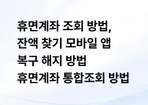 휴면계좌 조회 방법, 모바일 앱 복구 해지 방법 잔액 찾기 휴면계좌 통합조회 방법 알아보기
