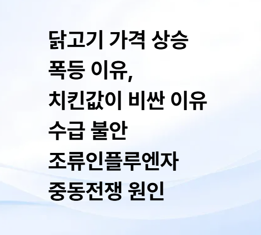 닭고기 가격 상승 폭등 이유, 조류인플루엔자 중동전쟁 수급 불안 치킨값이 비싼이유 알아보기
