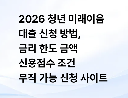 2026 청년 미래이음 대출 신청 방법, 신용점수 조건 무직 가능 금리 한도 신청 사이트 알아보기