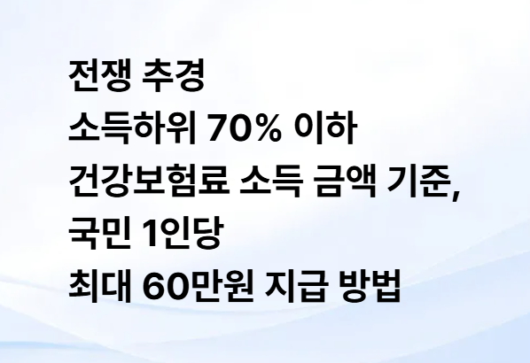 전쟁 추경 소득하위 70% 이하 건강보험료 소득 금액 기준, 1인당 10만원~최대 60만원 지급 알아보기