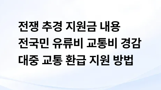 정리하면 전쟁 추경 정책은 유류비 부담 완화 정책과 교통비 환급 정책이 중심이며 취약계층 지원과 산업 지원 정책이 함께 추진됩니다.