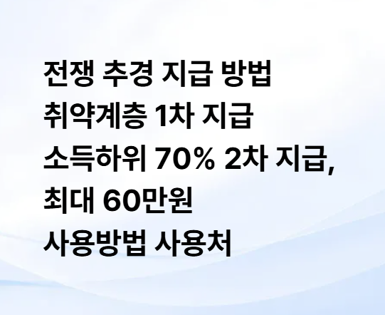 전쟁 추경 지급 방법 소득하위 70% 2차 지급 취약계층 1차 지급 최대 60만원 사용처 알아보기