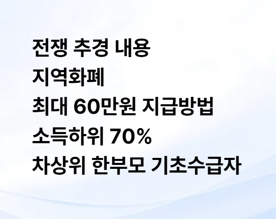 전쟁 추경 내용 소득하위 70% 최대 60만원 차상위 한부모 기초수급자 지역화폐 지급 방법 알아보기