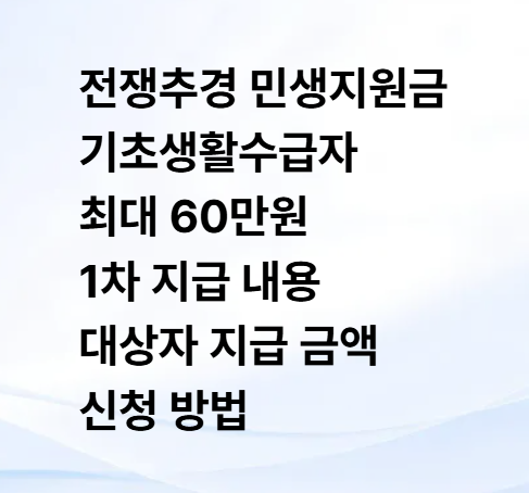 전쟁추경 민생지원금 기초생활수급자 1차 지급 내용 최대 60만원 지급일 대상자 신청 방법 알아보기