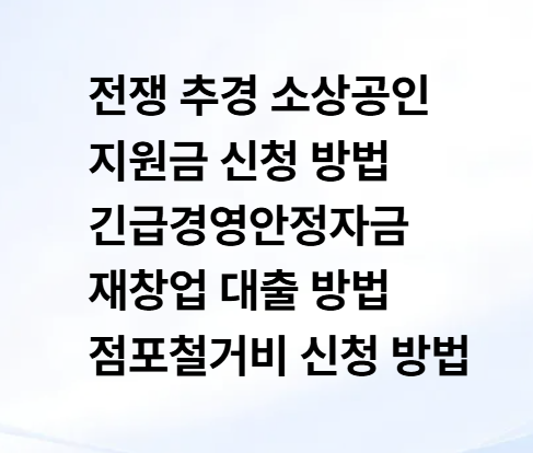전쟁 추경 소상공인 지원금 신청방법 재창업 긴급경영안정자금 대출 점포철거비 지원금 신청방법 알아보기