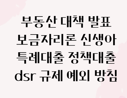 부동산 대책 보금자리론 신생아 특례대출 정책대출 dsr 규제 예외 알아보기