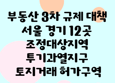 부동산 3차 규제 서울·경기 12곳 조정대상지역 투기과열지구 토지거래 허가구역 알아보기