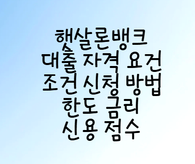 햇살론뱅크 대출 자격 요건 신청 방법 조건 한도 금리 신용점수 알아보기