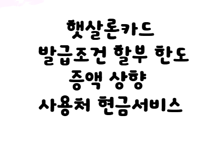 햇살론카드 발급조건 할부 사용처 한도증액 상향 현금서비스 알아보기
