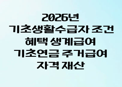 2026년 기초생활수급자 조건 혜택 자격 재산 생계급여 기초연금 주거급여 알아보기