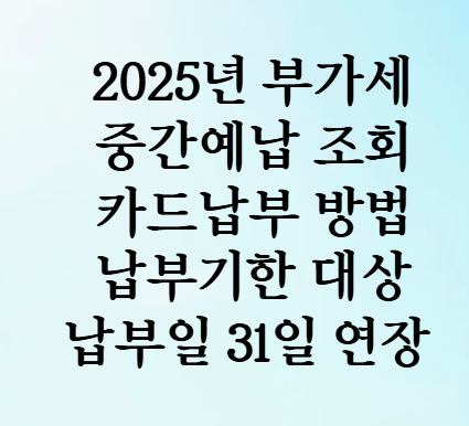 2025년 부가세 중간예납 조회 납부기한 대상 납부일 31일 연장 카드납부 방법 알아보기