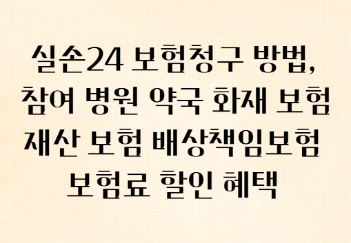 이번 글에서는 실손24의 보험청구 방법부터 참여 병의원·약국, 그리고 화재보험·재산보험·배상책임보험의 할인 혜택까지 정리해드리겠습니다.