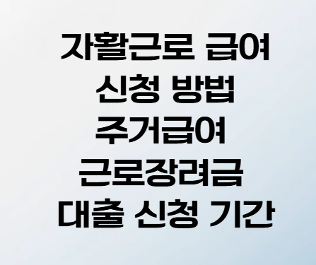 자활근로 급여 신청 방법 주거급여 월급 근로장려금 대출 생계급여 신청기간 알아보기