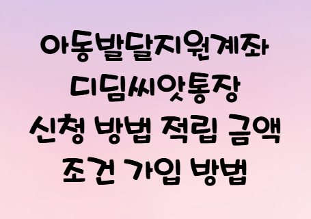 아동발달지원계좌 디딤씨앗통장 신청 방법 자격 기간 대상 적립 금액 가입 방법 알아보기