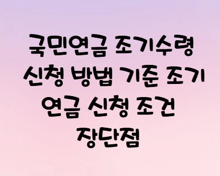 국민연금 조기수령 신청 방법 조건 금액 소득 기준, 조기연금 장단점 알아보기
