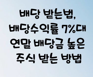 배당 받는법, 배당수익률 7%대 연말 배당금 높은 주식 배당수익률 받는 방법 알아보기