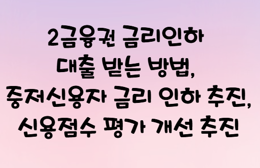 2금융권 금리인하 대출 받는 방법, 신용점수 평가 개선, 중저신용자 금리 인하 추진