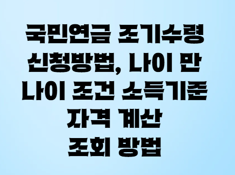국민연금 조기수령 신청방법, 조건 소득기준 나이 만나이 자격 계산 조회 방법 알아보기