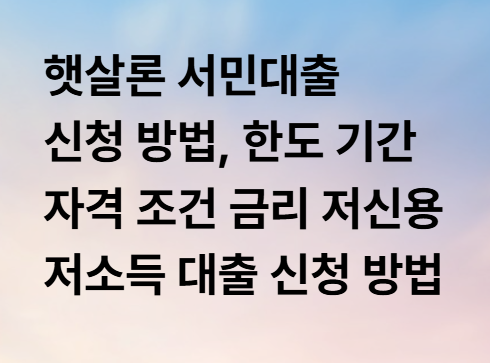 햇살론 서민대출 신청 방법, 자격 조건 금리 한도 기간 저신용 저소득 대출 신청 방법 알아보기